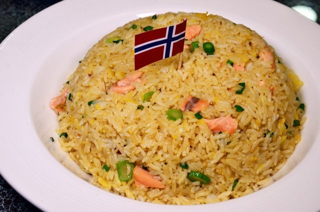 三文鱼炒饭:米饭的软硬程度适中,金香可口