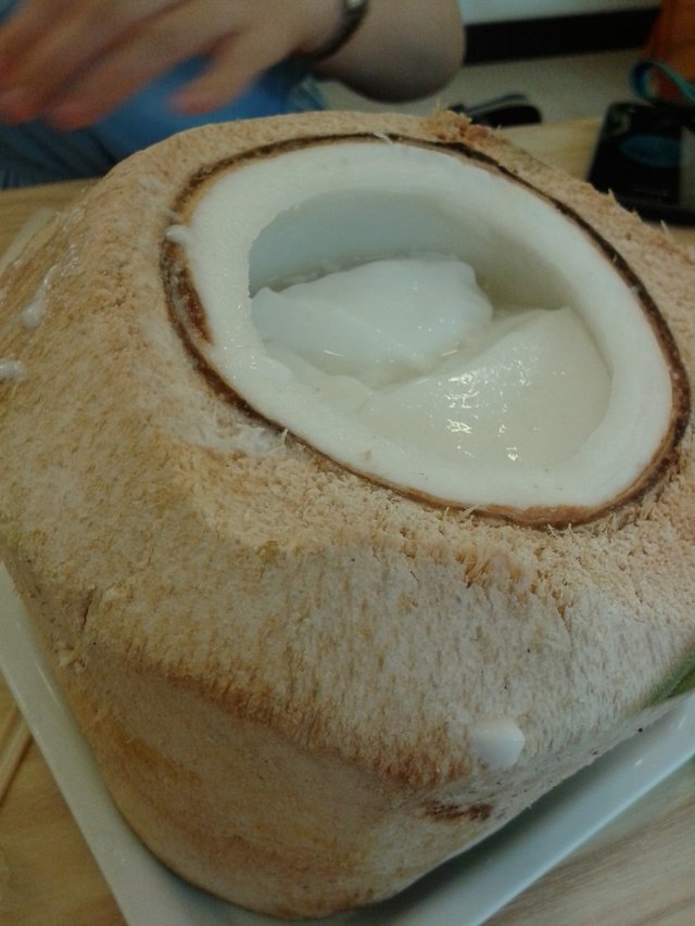 椰子冻,20元一只,里面挺满的。上层椰子奶冻,下层椰青冻。最后天然椰子肉。椰子奶冻很软很滑,入口即化,比较甜。椰青冻,很Q弹,味道比较淡,但是口感好正,很清润。椰子肉,半天都挖不了一点点,放弃了。