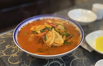 糖醋肉 / 酸甜干烹鸡 / 辣椒鸡 / 海鲜饼 / 豆浆面 / 辣牛肉汤