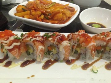 万岁长期搞团购的,不过呢个代金券就真系几抵吓,一餐落来起码省唔少的。他家的三文鱼出名唔错的,所以去到必试的。分量真心的唔错,其实3个人吃的话都够的,当然对三文鱼唔系好疯狂个种。唔算系好厚切,不过好新鲜,色泽均匀,纹路清晰,吃落口感唔错;芝士明虾卷,大爱芝士的,明虾系炸过的,夹系里面,最上面就铺咗片芝士,吃落自然系好香的,虾又够脆;红蟹子蛋寿司,蟹子非常的新鲜,吃的时候感觉系个口都跳紧咁,卜卜脆的,上面的蛋黄酱好香,外面的紫菜够脆。