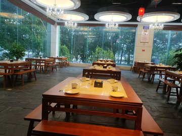 酒楼位于沿江东路,近大沙头码头,饮茶的楼层在20楼,窗边临江位视线非常开阔,看出去一带绿水,人心情都非常空阔,就是窗边茶位很贵,每位16蚊。除了窗边位的大厅就10蚊茶位。大厅很整洁,看得出是摆喜宴用的,服务员很多,加水很勤快,有什么需求会马上响应。9点半开始入席,11点半前埋单可以打7折。 XO酱炒萝卜 虾不是很新鲜,没有味道,不是很喜欢,牛肉的拉肠ok。XO酱炒萝卜,萝卜很新鲜清甜,XO酱里面有很多火腿、瑶柱的干货,很惹味 左:虾饺、右:花旗参汤虾饺 那些虾都没什么味道,个头也比较小,参汤的味道还可以 咸水角,鸭梨的造型好有趣,味道不错。 蒸排骨,味道ok,咸味适中,排骨比较嫩滑。 法式焗餐包,表皮很松软,内馅叉烧好吃,就是肥肉多了点。 猪肝粥,这个没有试,味道应该ok 发菜咸猪骨粥,这个味道不错,咸猪骨腌制得够咸 总体而言,这是家环境感觉大于味道的叹早茶之处,服务与味道加分,食品尚未达到非常出色之处。…查看更多