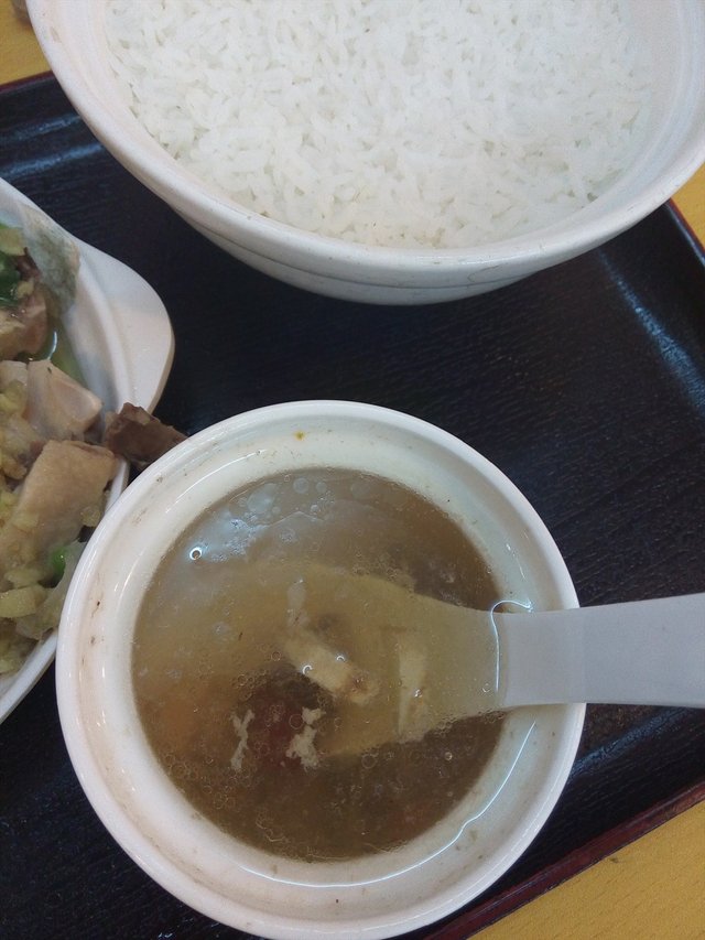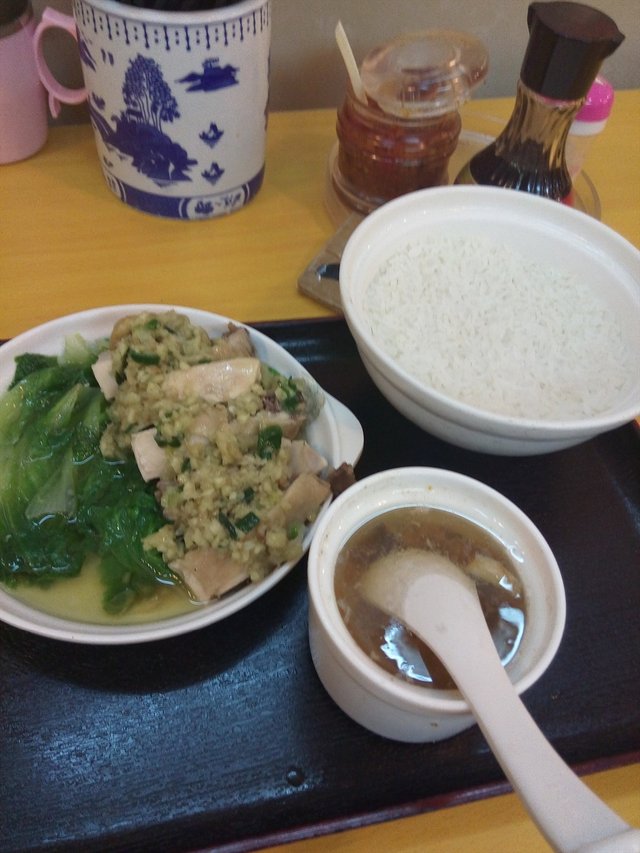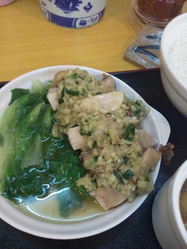 因为在附近办事,所以就在这一家吃饭了,地方不大,一般的人都是吃云吞面多,看起上来也比较像一间云吞面店,要了白切鸡饭,和平时吃的白切鸡不同,这个严格来说是姜葱蒸鸡吧,比较好奇的是点解鸡皮都好像不见了,可能是蒸的时间有点过了吧。所以肉质有一点柴,都是鸡胸肉的部位,没有什么鸡味,像是冰鲜鸡的口感,姜葱也是没有多少油,是加在一起再蒸的吧,和菜一起上的,一层汤水了,看见就有些失望了,出品比较马虎。配的炖汤也是一般般,没有什么汤料,味道淡淡的。可能是加了很多水的原因吧。这里的饭质感不错,比较有质感,不会很烂,软硬度刚刚好。…查看更多