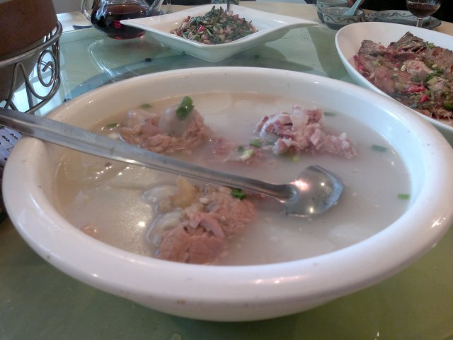 数年后再入佬湘楼,却是因为点评刮起的1元风暴,结果风暴半途溜了,还是特价菜划算。越秀城市广场的新店装饰得比想像和对天河那家老店的记忆要好得多,桔红的乡字灯笼仿佛引人走进了那充满湘土气息的所在,装修简洁高雅而不奢华,很舒适的感觉。服务人员个个都亲切有礼周到,不会让人感到拘束。因着湘菜的辣容易上火,八宝茶有较好调剂的作用,于我们的体质来说是不二之选,不过却是没有想到10元一位的八宝茶,甘甜清润,虽然好喝也着实太贵。佬湘楼的菜牌逐页的看完,实在有太多想吃的,无奈只得两张嘴,在商务特价菜中点了拆骨肉焖肥肠,农家一锅香和大盘炒茭白这三样,吃到最后却还得打包。农家一锅香据说是大众都很喜欢的一道菜,特价22元,由笋丝、木耳、荷包蛋和五花肉爆炒而成,笋丝稍老的部分没有去除得干净,算是一点瑕疵,木耳很不错,应该用的是名为老鼠耳的木耳,小小的一朵,口感柔滑,我们要的微辣,倒是处理得不错,总体来说是不错的。之前不知道拆骨肉是不是如我想像中那般将骨拆了之后再烹制的,一吃之下,果然不同,倒有些像广东煲完汤之后的猪展肉,却又比那嫩滑些,不老无渣,肥肠却也真的是肥肠,厚厚的很有口感,又稔软适中,不会过烂又不会嚼不动,配在一起倒也算相衬,不过这微辣的口感对于我来说还是过辣了点,再者上桌还配个了炉灯,这一番加热下来,只吃得我欲罢不能又涕泪交零。这个时节的茭白似乎不是时候,只是许久没吃过了,突然就想念了,除却某几块有些老硬的外皮不计,19元的价格倒让它成了一道有性价比的菜,要了不辣的做法,只用了嫩蒜苗加上五花肉清炒,味道清甜爽脆,喜欢这种水生植物的口感,不过茭白也是耗油的蔬菜,多点油才更香。这顿午餐比预计多花了将近二十元,那是八宝茶的价格,如果用了1元风暴的优惠怕也跟这个数差不多吧。…查看更多