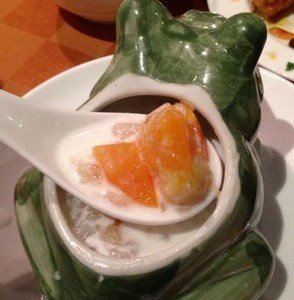 侨美兰桂坊 很驰名的一家饭店  很久以前就来光顾了   这次来沙面游就顺道再来吃  味道不复当年很可惜 椰汁木瓜炖雪蛤   造型独特  很喜欢小青蛙造型了   味道不错  吃起来滋润的很 哈哈红烧乳鸽   嗯嗯  他们家得招牌菜  可是近年来越做越差了  有点失望  不够能不够脆  就是特价才吃的澳门虾羔啫芥兰  好吃 我个人本身很喜欢吃虾膏  这个正合我  浓浓的虾膏味道  还配上铁板  香味十足查看更多