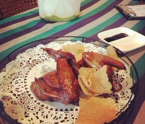 这间店位于沙面南街5号,他家的招牌乳鸽非常非常赞,味道很好,肉汁鲜美,皮酥肉嫩,价格很便宜,只要18一只,但每人只能点一只。此外咖喱蟹的味道也还可以,咖喱味道很香,拌饭吃一流,蟹肉就不够多,肉质也老了点,吃惯了泰式的感觉还是差点意思。他家的榴莲薄饼是属于比较有创意的,榴莲肉比较多,味道也很纯正,而饼的水平不稳定,有时候水分太大,有时候饼又太厚,如果饼能薄些就更好了。椰汁炖雪蛤口味一般般吧,那个盛菜的盅比较特别,是一只蟾蜍。人均价格七八十左右,性价比不错。查看更多