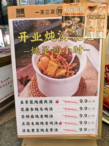 原盅养生炖汤 / 姜葱白切鸡拼蜜汁叉烧饭 / 凉瓜炖龙骨汤 / 花旗参炖竹丝鸡汤 / 烧鸭拼手撕鸡拼叉烧 / 脆皮烧鸭拼手撕鸡饭