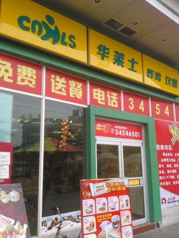 这家华莱士吃过一两次,应该说是正式注册的“山寨版”M记、KFC,经营的食品很上面两家差不多,都是炸鸡、汉堡包、薯条之类,价格最便宜也要10-15元,并不比M记、KFC便宜,味道也没有他们的好。他家有个香辣鸡腿堡8元一个,虽然比M记便宜,但是没有M记那么香、脆,口感差很多。至于饮料方面,无论是牛奶、可乐味道都很淡,应该是掺了水。到他家的这几次都是同事请的,如果不是别人请我吃,我是不会再去吃的。