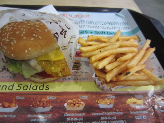 9.9元一个餐,里面有一个汉堡、一份薯条和无限续杯的汽水饮料,真心抵到无朋友咯。店在高德置地靠近友谊国金那附近,能经常看到穿着友谊工服的客人在这里用餐。wifi好给力啊,服务也不错,有次手机没电,还在他家的插座上充了十几分钟。不过主要还是学习了西方的快餐的自助文化,很多事要自己办。例如自己去添酱料,自己拿餐巾等等。最喜欢这里的汉堡,看上去个头中等,不过拿起来厚厚的,一口咬下去口感丰满。配料很多,有洋葱圈、鸡肉、西红柿、青菜,很健康又有饱腹感。薯条也不错,新鲜做出来的就是不一样。例外这里的汽水选择也多,有芬达橙味、雀巢柠檬茶,就可乐就有百事可乐、可口可乐原味、零度可口可乐可供选择。如果没有团购的话,好像买正价汉堡也可以免费得薯条和可乐,二十多元,还是值得的。查看更多