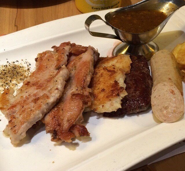 卡朋西餐 wycszmx等级42015-02-2654 浏览 关注 卡朋西餐还是很抵食概,我次次都会点皇家杂扒套餐,78块钱一份,扒类超级的多,不过最多的还是鸡扒了,虽然每一块都不会很大,但是足足的三块也算是够数了呱,扒类煎烤的比较干身一些,吃起来淡淡的油香味还是有的了,还给了一个完整的雕花薯仔,就是干烤的,很纯粹的薯泥味道。泰式炒饭是38块钱的,就是咖喱炒饭,加了一些牛肉粒还是鸡肉粒的,米粒是长苗米。…查看更多以上食记乃用户个人意见 , 并不代表OpenRice之观点。赞好分享卡朋西餐 卡朋西餐 (来又来广场) https://s.openrice.com/KtLT0m0eQ0E00检举 张贴 评分4味道4环境4服务4卫生4抵食推介美食皇家杂扒¥78用餐途径堂食