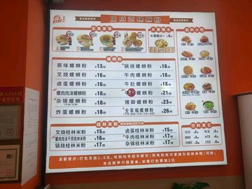 锅烧螺蛳粉 / 猪脚螺蛳粉 / 木薯糖水 / 牛肉螺蛳粉 / 炸蛋螺蛳粉 / 螺肉螺蛳粉