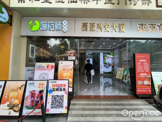 喵药师茶研社 (西亚兴安大厦) (广州) 网址: https://s.openrice.com/KtLS0m0RLQU00 地址: 广州天河区沙河仙桥街38号西亚兴安大厦1层2401号铺 电话: +86 18138726820