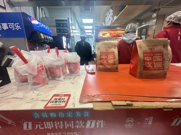 香辣鸡腿中国汉堡 / 冰柠可乐 / 秘汁手扒鸡 / 培根煎蛋中国汉堡 / 粗薯 / 香辣鸡腿堡中国汉堡