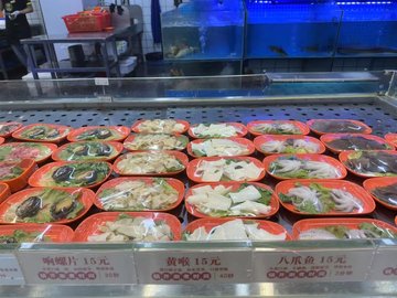现切吊龙 / 大生蚝 / 九节虾 / 象拔蚌 / 椰子海鲜粥椰子水锅 / 鲜牛肉片