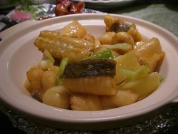 人民北那里最长盛不衰的店子肯定就有大可以一家了,连美景都倒闭了,这家虽然没有太多人,但是基本上每次去都不会有太多空台的。葱油鸡一定是最喜欢点的,鸡肉其实是很多的,切的很平整的,鸡肉自己的肉味都比较平淡了,主要是葱油的香味,其实主要是葱味,油味和酱油味道都抵不过葱味的,所以味道比较生鲜一些。花菇鱿鱼煲里面鱿鱼是配角了,只有几个而已的,花鼓很多,但是最好多切细一点,现在太大块了,酱汁很香,真的蘑菇汁就是这个了吧,捞饭太赞。