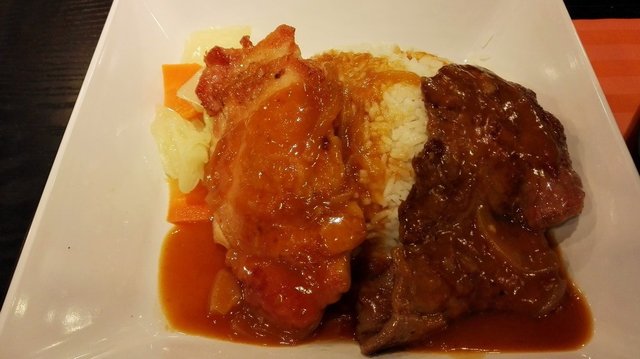 去大快活吃饭一般都是点碟头饭的,价格都是三四十蚊左右吧,性价比还OK,毕竟用餐环境比一般快餐店好太多了。杂扒饭属于很抵的选择,扒类其实主要就是鸡扒和猪扒,小小的一块牛扒而已,鸡扒就比较嫩了,其实颜色和猪扒都差不多了,没有太重的味道,主要是那些黑椒汁的味道吧。酱香鱿鱼饭也比较爱吃,鱿鱼几乎给的都是鱿鱼圈了,吃起来会比较有嚼头的说,但是鱿鱼的口感略微有点硬了,酱汁很多,有些类似烧汁吧。ดูเพิ่มเติม