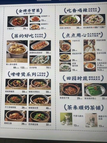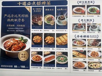 顺德豉味碌鹅 / 鲍汁海皇豆腐 / 上汤桑叶苗 / 老广腊味煲仔饭 / 大良炸脆奶 / 古法鲜果咕噜肉
