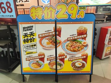 飞天豉油鸡饭 / 虾仁滑蛋饭 / 葱香手撕鸡拼鸡翼饭 / 葱油鸡扒饭 / 猫仔冻柠茶 / 猫仔王者奶茶