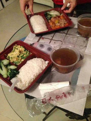 公司加班~点了大西豪外卖~~晚上时候了~~今天送餐特别迟~~5点40叫的~6点半都还没到~催了几个电话~每次都说已经出发了~真纳闷~~送餐员姗姗来迟~态度还极为傲慢~说得上是凶~~差点吓到我了~今天的凉瓜炒蛋做得很马虎·~还有蛋壳了~~分量感觉越来越小~都吃不饱啊~