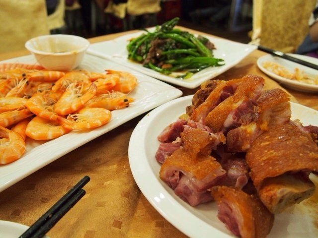 去这一家排了很长的队,,差不多一个小时,,不容易,,还是和别人搭台,脆皮猪手看到几乎每台必点的菜色,,色泽诱人,皮是焦黄松脆的,猪手肉很嫩,甘香味,嫩得有点像是乳猪手,,白色肥肉不是很多,可以接受的范围还有酱汁点,,葱油淋鸡就是姜葱白切鸡吧,鸡皮透亮,,鸡肉嫩滑,吃得出非常新鲜。酱油有一点太咸了,姜葱的份量有一点少了,,味道不错。沙拉猪排新鲜的配搭,,净猪排可能有一点寡,加了沙拉酱,,味道马上变得丰富起来,奶香浓郁,猪排外脆内嫩,不错的。查看更多
