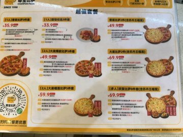 榴莲比萨 / 香辣至尊比萨 / 新奥尔良烤鸡肉比萨 / 奥尔良烤翅 / 蒜香烤鸡翅 / 超级豪华比萨(10英寸)