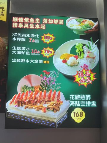 顺德靓鱼生 / 红咖喱吮指大肉蟹 / 黑胡椒吮指大肉蟹 / 招牌姜油厚猪润 / 啫爽脆大黄花鳝 / 秘制姜油浸五花趾