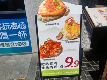 火炙牛舌寿司 / 火炙蔓越莓鹅肝寿司 / 蔓越莓开心果牛肉寿司 / 天妇罗南瓜蟹膏寿司 / 鹅肝牛肉汉堡扒饭 / 油焖鲍鱼寿司
