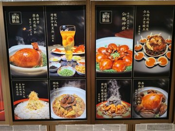 鸽吞翅 / 利比亚黑毛猪叉烧 / 榄仁黑松露火腿滑蛋炒东星斑 / 黑蒜花胶汤 / 膏蟹炒鱼翅 / 鸡吞花胶