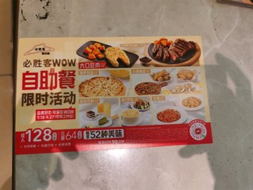 系四季时尚既喜洋时代影城睇完电影,行出广场路口就见到PizzaHut,于是就来左呢间新张无耐既PizzaHut吃晚餐。店铺总体装潢和其他连锁店都系一致既,简约既木质桌椅,环境卫生干净。系门口见到大块广告招牌,PizzaHut呢期推出左天天半价既特惠,貌似每年都有呢甘既活动。今年时间稍微早左呢,天天半价优惠从5月21日起到7月1日,各家分店都有,每天两款,日日翻新!优惠既食物包括比萨、牛排、意饭、意面、沙拉、饮料、甜点和小吃等。。。入到里面坐低,服务员好热情甘来介绍优惠,据闻晚上八点半后中有夜茶叹,重点系饮品可以免费续杯,同下午茶餐牌一样既食物。星期三既天天半价两款食物系德克萨斯风情小牛排Pizza(普通装半价¥34.5,大装半价¥49.5)&酥炸鱿鱼(半价¥14)。我地刚好两人可以点今日既两款半价食物,因为半价优惠既系规定一人只能点一款,朋友话想饮热汤,中点左份上选精炖牛肉汤。上选精炖牛肉汤¥17,牛肉汤睇得出用料十足,里面系精选牛腱肉粒、鲜嫩玉米、土豆、胡萝卜、西芹,并以月桂叶和鱼露调味,充满欧式美味,牛肉很嫩口,令人回味无穷。酥炸鱿鱼半价¥14,筋道既鱿鱼圈和鱿鱼须沾上意大利粗麦粉同粟粉,落油锅炸至金黄色,上台既时候香酥弹牙,大家记得要趁热吃啊。德克萨斯风情小牛排Pizza普通装半价¥34.5,pizza选用小牛排肉,加入德克萨斯风味酱调调味,铺满在pizza面上既小牛排肉粒,口感鲜嫩多汁,pizza中加入左番茄、青椒等中和了pizza既油腻感,让人感受到浓浓既美国西部牛仔风情。PizzaHut丰盛既一餐落来,都系¥65.5够晒经济实惠,喜欢吃pizza既值得一来,出品唔错。