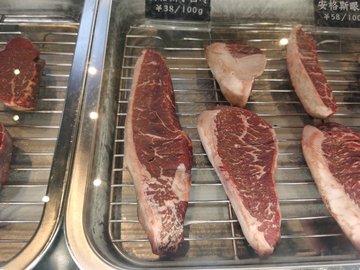 爆浆牛角包 / 谷饲板腱牛排 / 番茄肉酱意面 / 沙拉 / 牛角包 / 一块真正的原切战斧牛排