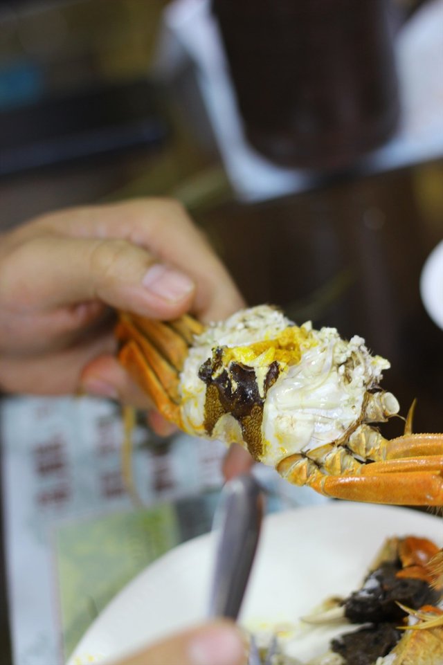 这间店已经开了将近十年,环境比较简单,朋友介绍说因为这间店之前并不是餐厅,而是一间售卖蟹的专门店,也会帮食客蒸蟹,好像是之后生意变好,许多食客要求做多一些蟹相关的菜式,老板转变成食蟹专门店。店内除了蟹是最重要的主角之外,还有许多江南特产,各式各样的,总有一款是你喜欢的。店里的环境也十分简单,在不大的环境里,摆放着一些普通的桌椅,墙壁上挂满了媒体采访的报纸,足以证明这间店的知名度和实力。一只蟹王就要将近五百,不过手掌的大小,被捆挷着的它,有点委屈,似乎它并不知道一会儿自己将会面临怎么样的未来。当这只蟹变成红色之后,被我粗暴的掀开蟹盖,这时我才发现,为什么这只蟹值这个价格,因为它里面有丰满的蟹膏和蟹黄。鲜美得流油的蟹黄,粉粉的蟹膏,每吃一口都是不同的口感,吮吸完最美妙的蟹黄和蟹膏,开始扯开它的四肢,品尝蟹脚里白皙的蟹肉。仔细的品尝完一只蟹,必须要自己亲手拆蟹壳,然后慢慢吃,这样才是对食物的最大尊重。潮式腌大闸蟹完全不是卤水的烹饪做法,更像是冷泡的做法,让潮式卤水汁慢慢的渗透入蟹肉里,这时吃的不再是蟹的鲜味,而是生蟹的口感,带点腥的鲜。最奢华的做法是冰淇淋蟹,其实个人而言,觉得这个做法有些残忍,直接把它冰冻至死,然后就品尝这蟹仍活着时候的鲜美口感。的确跟冰淇淋有些像,幸好没有腥味,只是更有肉香罢了,第一次吃,尚且能够接受。新鲜出炉的蟹粉小笼包,反倒是我最喜欢的,可能我特别喜欢吃热的食物。小笼包里面有饱满的汤汁,味道十分鲜美,蟹粉包裹着瘦肉馅,一人人可以把它当作主食,吃掉整整一笼。…查看更多