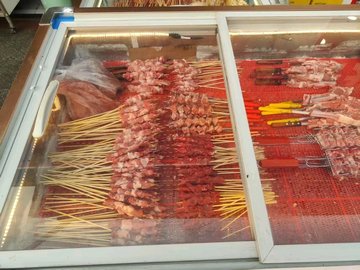 嫩牛肉小串 / 新疆馕饼 / 烤鸡翅 / 新疆羊肉串 / 牛肉串 / 烤韭菜