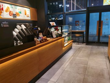 遇上星巴克周年庆,门口排满了人,原来是免费领咖啡所以我也参与其中啦,送了杯斋咖啡,自己加奶糖和巧克力粉,推荐这家的星巴乐,现在大杯买一送一很实惠,和朋友都喜欢抹茶沙冰,上边有圈淡奶油,然后就是抹茶沙冰在下边,淡奶油一点都不腻,搅拌在一起喝很美味!店员都非常友好,各种闲聊~