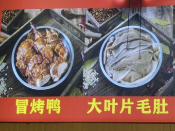 冒烤鸭 / 大叶片毛肚 / 肥肠 / 千丝白毛肚 / 春竹笋片 / 耙猪脚
