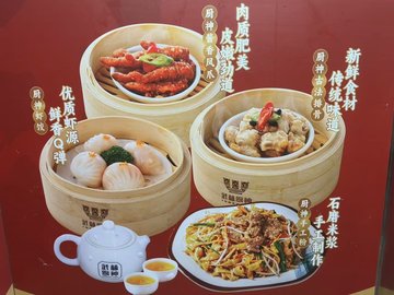 豉油黄金鸡脚 / 酸菜牛肉炒武林手工粉 / 正果腊味炒西兰苔 / 爆浆蛋黄流沙包 / 杂锦蔬菜肉饼 / 新会陈皮牛肉丸