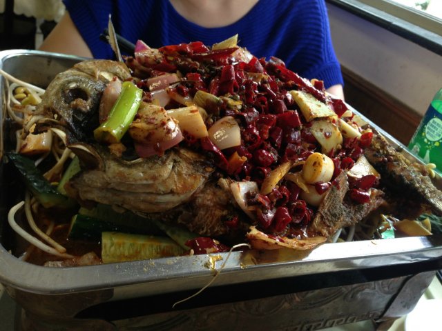 色有,味也重 增减的痛等级22014-04-2165 浏览 关注 店的格局一般,分两层,第一层是厨房,二楼是餐厅。我们去吃的时候已经是下午一点半,所以好少人,不会满屋子的烤鱼味,也不会太吵。烤鱼的份量还算可以,所谓川菜,那是又辣又麻,点菜的时候已经说明要微辣,结果一端上来,烤鱼上面的辣椒覆盖了整条鱼。烤鱼里面的配菜不多,只有些许的魔芋跟豆芽,多人吃的话还要另外单点些其他的。所以说,吃川菜,不要说微辣,那是为难人,人家根本不知道微辣怎么做。干锅醋溜包菜,比起我以前吃的,出品非常一般般。还点了豆苗,这个不错,挺清淡的,吃着烤鱼太辣太咸可以夹点豆苗来中和下口味。…查看更多以上食记乃用户个人意见 , 并不代表OpenRice之观点。赞好分享色有,味也重 渔米库重庆香辣馆 https://s.openrice.com/KtLT0m0lN0A00检举 天空不哭 好大条烤鱼~~~2014-04-21 回应 落落雪雪 果真是份量十足咯2014-04-22 回应 betty168 果然重口味咯2014-04-25 回应 张贴 评分3味道3环境3服务3卫生3抵食用餐日期2014-04-19