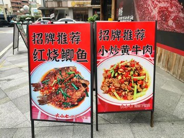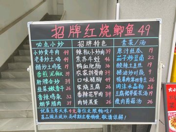 红烧鲫鱼 / 爆炒肥肠 / 小炒黄牛肉 / 爆炒鱿鱼须 / 老姜炒土鸡 / 口味猪脚