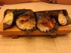 王子寿司 Elainee等级42012-08-2722 浏览 关注 同伴爱吃米饭,所以一下子点了4个最管饱的手卷。2个鳗鱼2个吞拿鱼。后来她拼命推荐吞拿鱼手卷,于是我就吃了一个。沙拉酱很多,和饭在一起吃还不错,吞拿鱼也挺多,起码吃到后面不会干吃饭。我胡乱地点以前没有吃过的,结果上来这么多生的。生的基本都没有味道的。北极贝韧韧的,不喜欢。其它生的都是大同小异。左上角的貌似是扇贝的好一点,起码有鲜甜的味道,不过肉质太削。下面的两个卷是同伴的,我对这种青瓜蟹柳萝卜润米粉卷实在没有爱龙虾沙律寿司好像没有第一次吃那么惊艳了海盗船一如既往好吃,一次满足你三个愿望,海草、三文鱼、八爪鱼都是比较喜欢的,腐皮也是喜欢的。…查看更多以上食记乃用户个人意见 , 并不代表OpenRice之观点。赞好分享王子寿司 王子寿司 https://s.openrice.com/KtLT0m0SX0300检举 张贴 评分4味道4环境4服务4卫生4抵食推介美食正正正