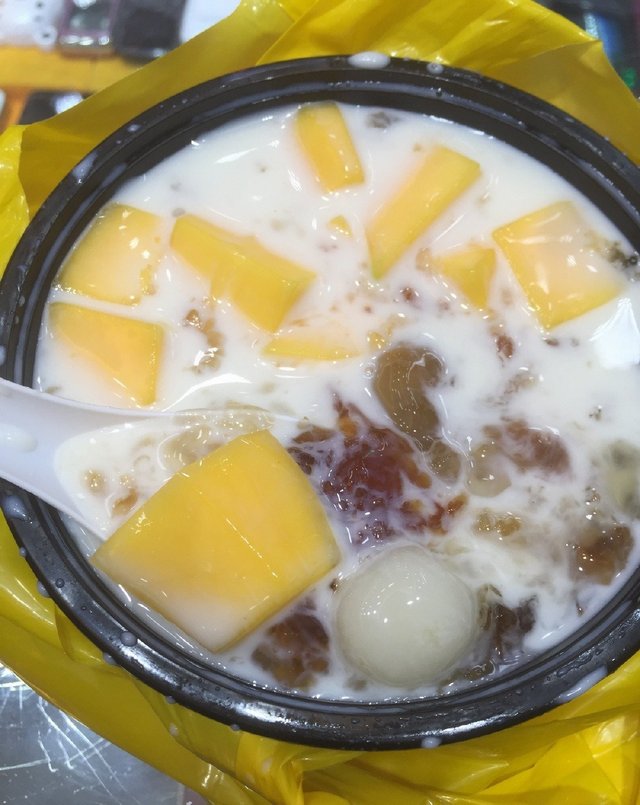 玫瑰甜品店都是老店子之一了,一路有帮衬开的,餐厅的环境确实比较小一些,而且一直觉得比较热,所以多数都是打包带走的了。芒果椰奶汤圆是最常点的,这个是热糖水来的,芒果都是新鲜切块的,吃起来很爽脆的,本身就是酸酸甜甜的,泡在椰奶里面还是保持了原味的了。汤圆够大颗,黏黏的,里面的馅料是黑芝麻来的了,特别的浓稠。查看更多