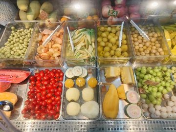凤梨鲜橙果汁冰 / 芒果凤梨果汁冰 / 青芒芭乐果汁冰 / 苹果雪梨果汁冰 / 芭乐草莓果汁冰 / 橙子果汁冰