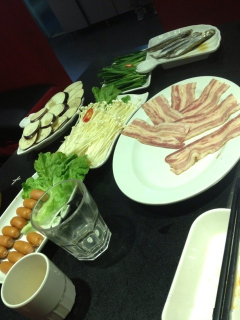 首先当然是环境。从门口就能一望到底,装修比较新式,红色的椅子和烧烤的火红主题十分和谐。服务生的着装和环境都十分到位,餐具看上去也很干净整洁,你说碟子什么缺个口的的确心理上总有点不舒服吧。说到服务,服务生态度很谦逊,手脚也麻利,换纸也勤快。一盘盘的生肉上来时,看得出造型方面的确有用心过,不是单纯地切割运动,好像虾,每只都细细切开再加入蒜蓉,很多食材也是看到有腌制过或者初步烹调的过程。餐厅的噱头就是“去酸”,这样的肉类会更加美味,我对这个词并没有多深入了解,可是发现肉质都不错。除却腌制,餐厅还很用心地配搭了每碟菜肴最佳的烹调方式以及佐烧的调味:例如和茄子上的是葱花和孜然,这样的烧茄子带点辛辣的惹味;鳕鱼的话则是融入牛油,还有面包,在牛油的热情包围下变得焦脆。牛五花猪五花菇类那些烧烤比较常见地就不多说了,好吃。推荐一些烧得比较少的例如田鸡,这个可要狂荐,肉质可以做到入口即化的程度,嫩到不行。脆肉鲩,烧烤起来竟然有QQ弹牙的口感,完全没有腥味。蒜蓉虾,这样吃比较少见,不过蒜蓉稍微咸了,幸好白肉的鲜味冲淡了鲜味。烤鸡翅:这个很喜欢,和外面买的很不同,辣的恰到好处,又脆又嫩。新品的烤罗非鱼(已经烤好),很香,不过总体来说特色不够;另外一个是烤鸡腿,虽然卖相不咋的,可是已经烤焦外皮的嫩鸡肉再放上去烤,双重的香味。看到又一盘各式肉类上来,大家眼睛都发亮了,把烤好的肉放在生菜上,加上辣的白菜(淡了一点)和酱料吃,和韩式的菜包肉很像,吃着不会那么油腻……鳕鱼和牛扒比较讲究一点,感觉上鳕鱼比较Q,牛扒比较难掌握,很容易过熟,味道相对就一般了点。红地瓜和面包也很好玩,前者切得很薄,烤着越来越干身,有点焦脆的外表最好吃;面包吸收了牛油香以后用余热烤熟,带点焦可以外脆内软。当然了总体的味道真的很好,但也不是十全十美的,有些味道腌制地比较浓。可能是对着烤炉的关系,又或者吃肉真的很有能量,冷冬里面这样烤上一下,果然很暖和……查看更多