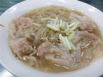 普通面家一个,外面的环境不算太好,内里尚可,午时人不算太多,要了,12元,分量适中,5粒云吞,个头不大,皮看上去薄,但口感偏硬且有碱味,馅一般,较少,蟹籽的卜脆感不强,汤底有些碱味,虽不会太浓,但却掩盖了汤原有的鲜甜味,面亦是靠碱来增加其弹性,初时入口还好,稍吃久一点则泡得更不好吃了,浪费了那点汤,这价格相对出品来说小贵了。