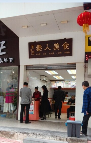 秦人美食现在的分店挺多的。这家秦人美食就在设计大厦的对面,靠近体育东路,很容易发现的。店面小小的,里面就几张桌子,中午生意挺不错的。喜欢吃这里的米皮,质地比较结实,咬下去比较弹口;调味也挺不错的,酸味带动着味觉,没胃口的时候吃一口就会食欲大增。唯一的缺点就是份量太小了,女孩子的都可能吃不饱。再叫一个肉夹馍又觉得有点儿多了。