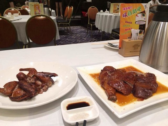先前参与太阳新天地周年庆活动秒杀了稻香酒家的100蚊代金券,于是同老婆过来享用晚餐,位置好好找,太阳新天地7楼,坐电梯上来好容易找到。一进去服务人就指引我们就坐,这里环境好宽敞,进来稻香酒家好舒适,不会让人感觉拥挤。看了一下点了招牌烧鹅,再叫了个黑芝麻汤圆。除此之外店长送了红烧乳鸽给我们,好兴奋啊!!!上菜了,烧鹅外面那层皮好有光泽,看起来好美味,可一口吃下去好咸吖,难道现在盐不用钱么?而且仔细一看烧鹅的皮肉分离而且没什么肉,乳鸽也一样好咸,我们只好泡进茶里再吃。有点失望。查看更多