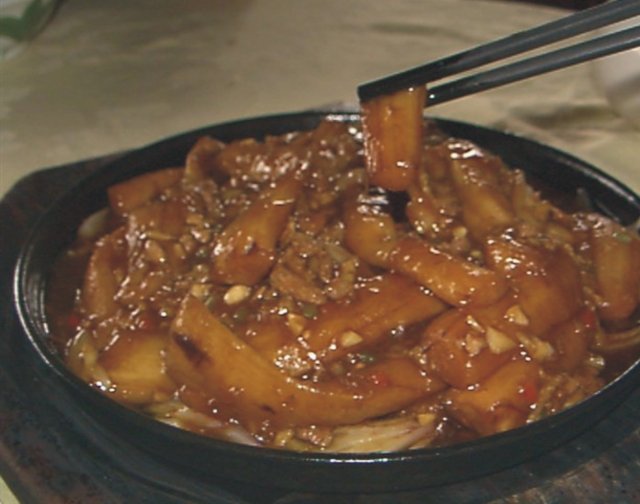 有点类似大排档的餐厅,东西做的比较实惠,量也很足。喜欢他家的烧骨粥,老火粥熬够了钟头,所以喝起来很糯的感觉,烧骨的味道也融到粥里面了,味道非常正。莲藕大肉丸,大大的肉丸里面夹着很多莲藕粒,咬起来有脆脆的口感,好吃又不腻。肇庆裹蒸粽,非常的地道,用筷子夹开以后可以看见很多的栗子和黄豆,馅儿中间的肥肉被蒸成了一汪油水,吃起来满嘴冒油,那叫一个香~查看更多