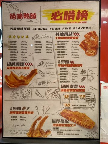 五香鸭脖 / 藤椒莲藕片 / 招牌鸭脆肠 / 黑鸭鸭翅中 / 经典小素拼 / 招牌虾球