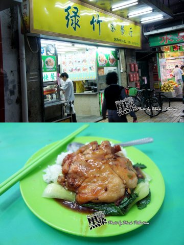 这间绿竹茶餐厅说是说茶餐厅,其实实际上就是一件极其普通的快餐店,环境一般,卫生状况也一般,时不时地会飞来几只苍蝇过来骚扰一下前来品尝美食的各位食客,感觉让人很不爽。这里的快餐价格总体上来说不算很贵,大致在10-15块之间,在现在这个百物腾贵的年代来说,能保持这样的物价水平实属不易。点了一个冬菇云耳蒸鸡饭,13块钱就有一盆热腾腾的饭菜了。看起来鸡肉都很大块,量也挺多,大概得占有整个盆盆面的一半左右。配菜是包心生菜和云耳,所以看起来整个饭荤素搭配,十分富含营养的一个午饭。真是光看都是一种不错的享受。吃起来鸡肉很爽口,味道很鲜甜,鸡味十足,包心生菜不起渣,很淋甜,不会粘牙。云耳很爽脆,十分甘香。吃完之后感觉齿颊留香,令人回味无穷,还算是一个不错的就餐好去处。