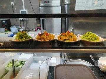 牛肉灌汤包 / 羊杂汤 / 鲜虾蟹籽灌汤包 / 好倔酱牛肉 / 面筋拌黄瓜 / 新鲜豌豆苗