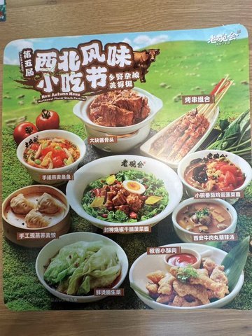 鲜卤豆干丝 / 鲜嫩芥兰苗 / 鲜烤羊肉串 / 陕西裤带油泼面 / 陕西手工凉皮 / 维C番茄牛腩面
