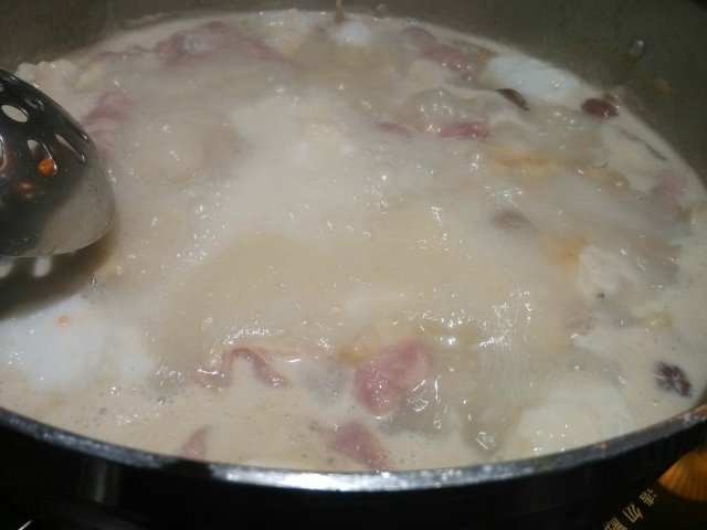 这两天天气转凉,同事聚会来了猪肚鸡这里,由于人比较多我们点了一个鹅煲一个猪肚鸡,还点了蔬菜、腐竹、手打肉丸,先说这里的鹅煲吧,味道非常浓,有点咸,鹅是挺好吃的,但是如果把腐竹这些配菜放下去就会有点味道太重了,总体来说还是可以的,至于猪肚鸡的汤底很浓,胡椒味很重,这种寒冷的天气吃是非常适合的,值得一说的就是它这里的手打肉丸,弹牙入味,真材实料,价格的话我们大约10个人喝了酒也才500多,还是挺划算的。…查看更多
