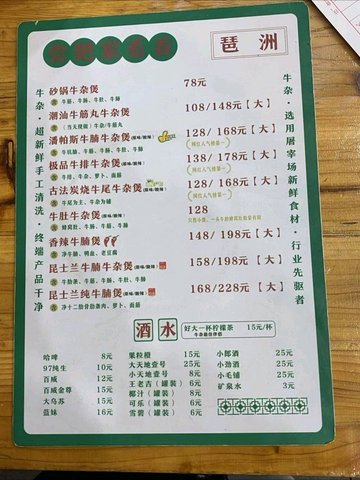 砂锅牛杂煲 / 牛腩牛杂煲 / 炸腐竹 / 微辣酱料 / 华丰面 / 牛排
